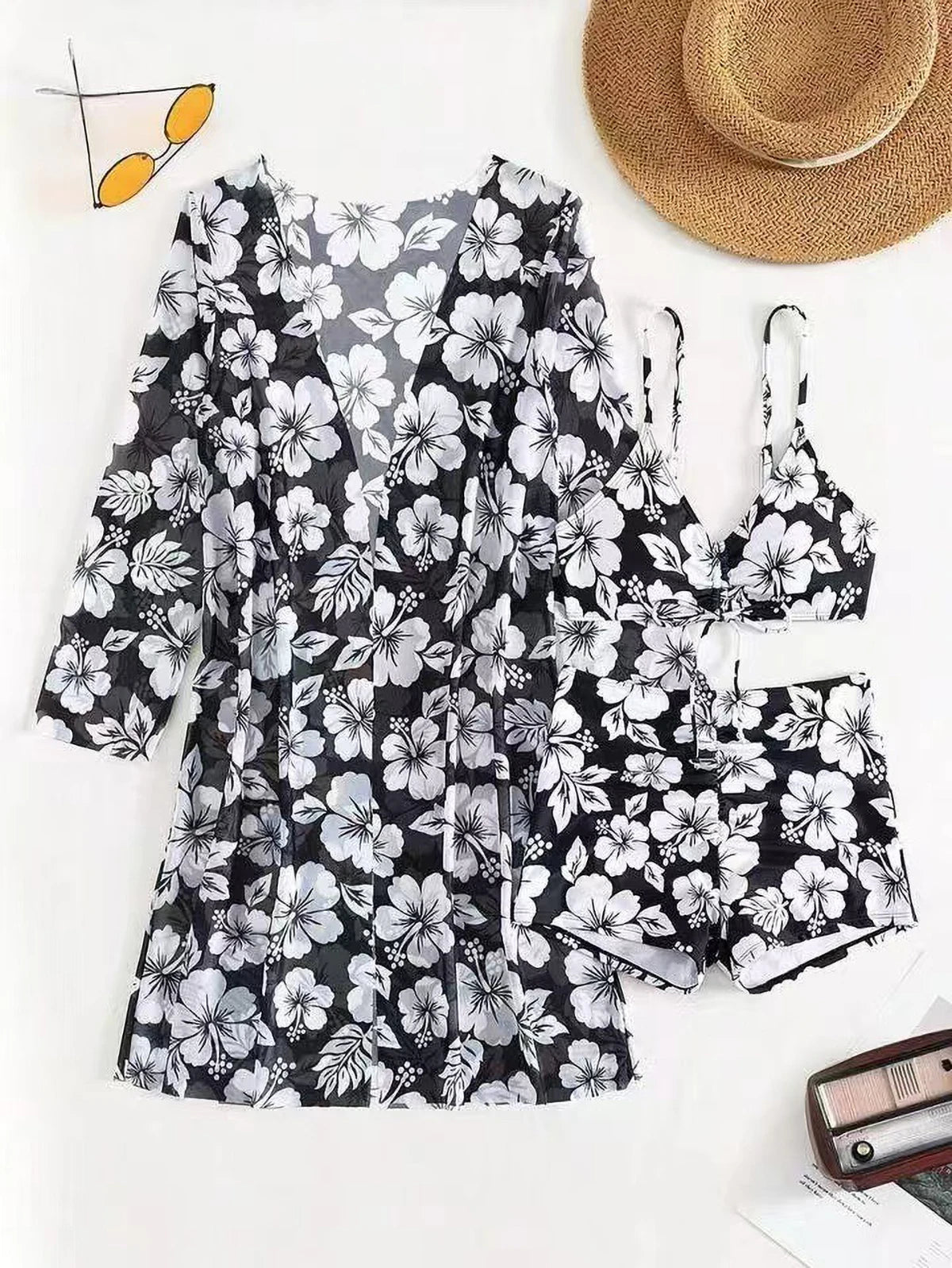 Vela Slimming Vikinis 2025 3 Piece Bikini Set Women High Waist Push Up Bra with Adjustable Straps & Sarong
