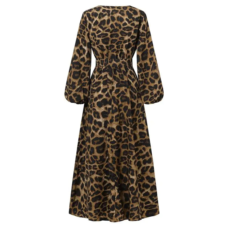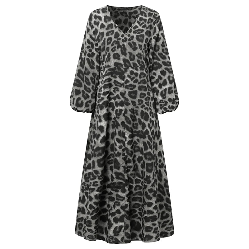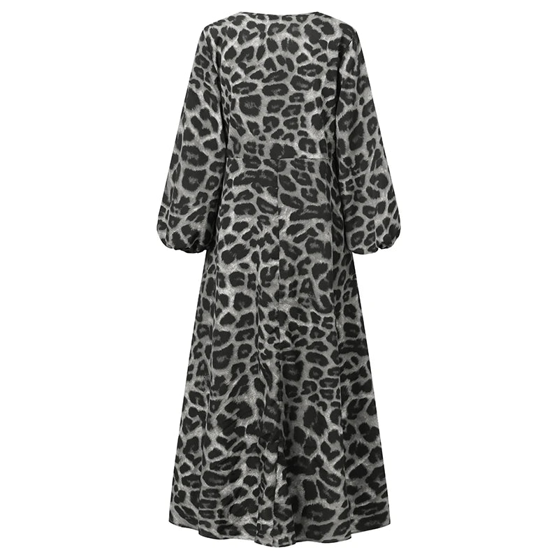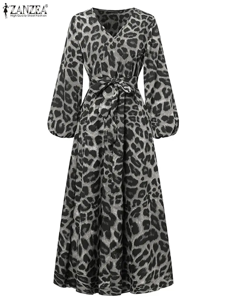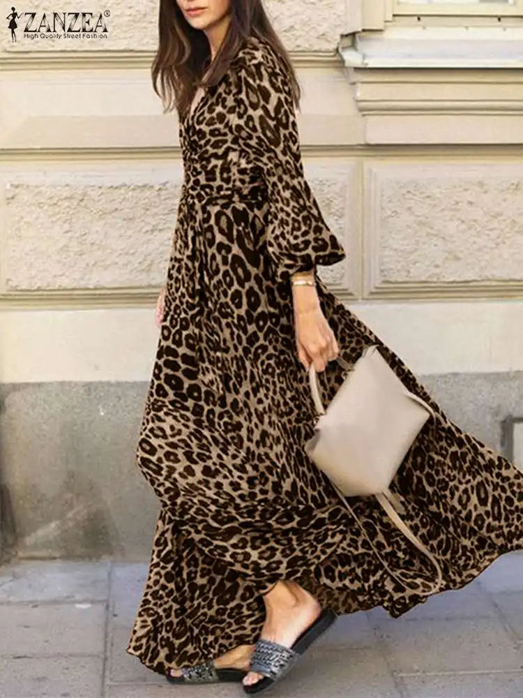 Vintage Women Long Sleeve Leopard Dresses ZANZEA Autumn Sundress Fashion Maxi Long Dress Party Vestidos Female V Neck Print Robe